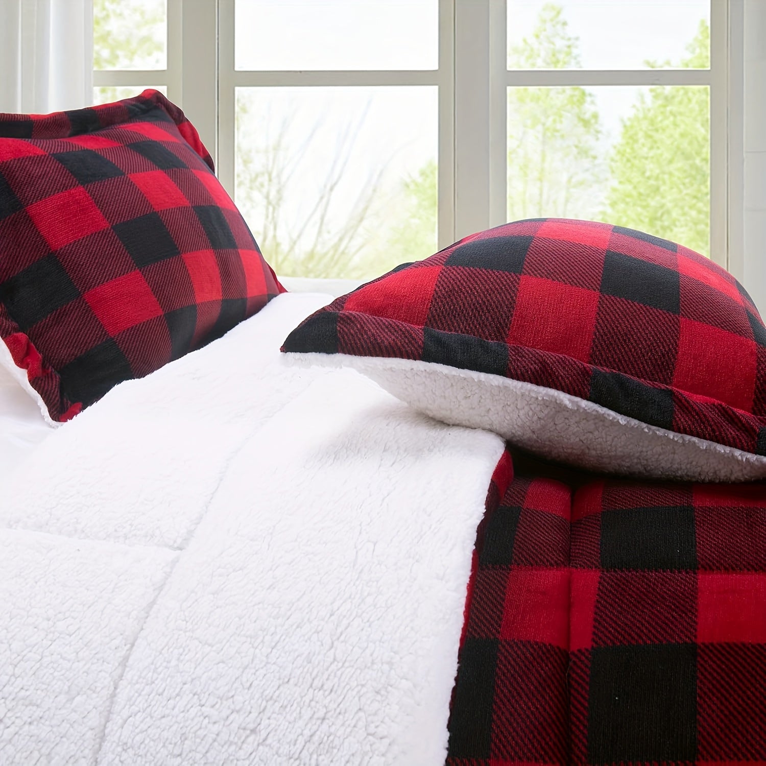 1pc Cozy Sherpa Fleece Buffalo Plaid Blanket - Sofa, Bed, And Outdoor Use - All-Season, Machine Washable, Soft Warm 4lbs, Weighted Blanket For Adults, Thickened Calm Blanket For Ultimate Comfort And Better Sleep, Heavy Weight